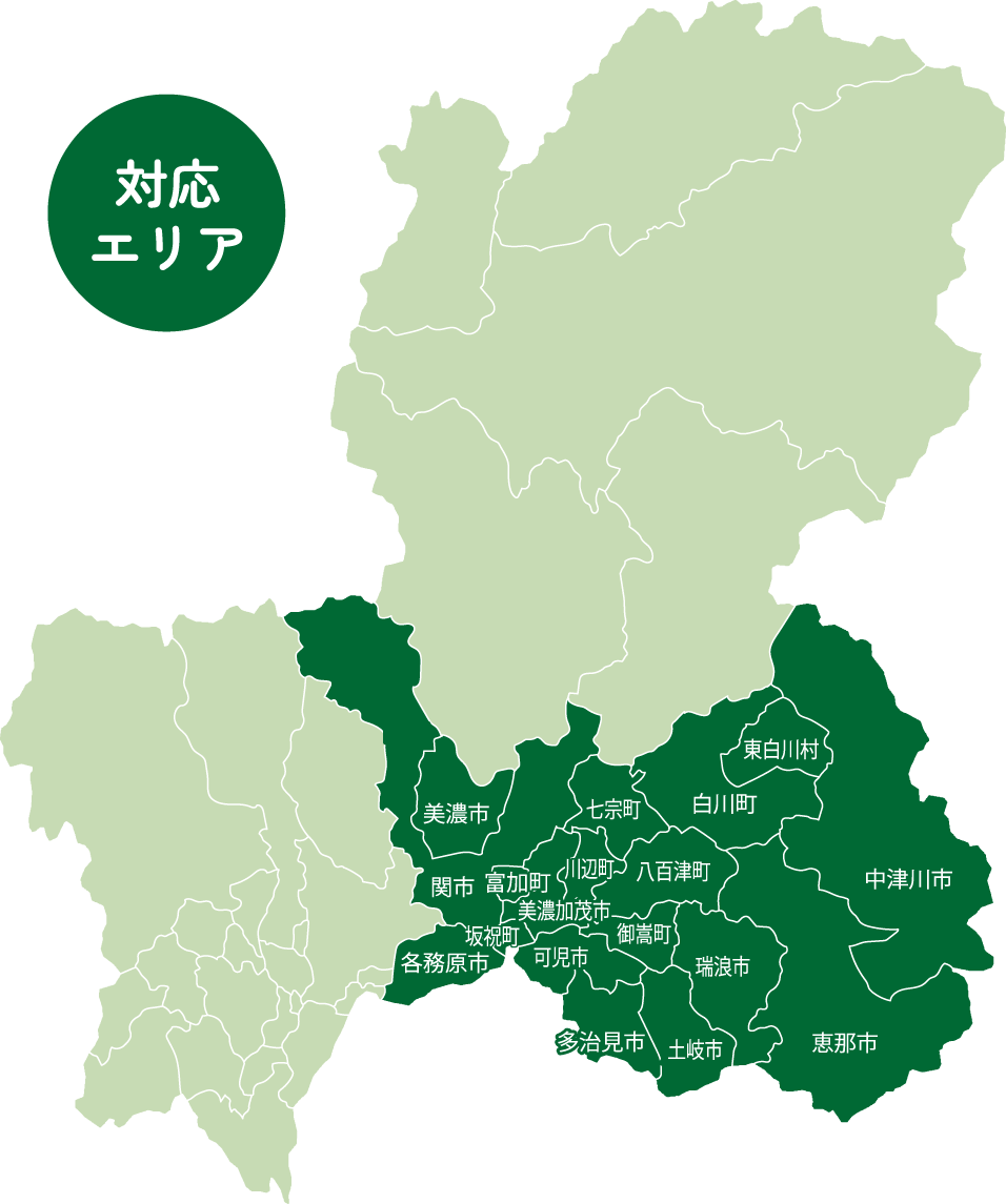 【岐阜県】多治見市、土岐市、瑞浪市、恵那市、中津川市、可児市、美濃加茂市、関市、美濃市、御嵩町、坂祝町、富加町、川辺町、七宗町、八百津町、白川町、東白川村